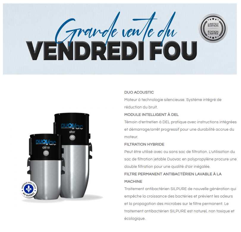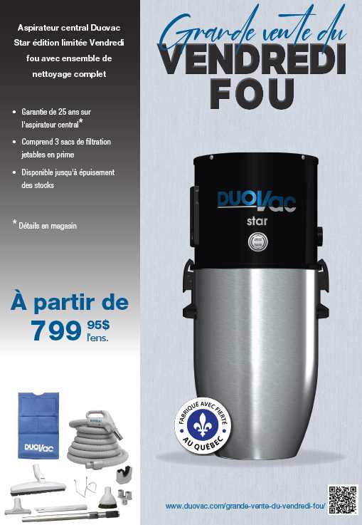 ASPIRATEUR DUOVAC STAR EDITION SPÉCIAL PROMOTION COLLECTE DE FOND CANCER DU SEIN GARANTIE 25 ANS MOTEUR ET PLAQUETTE ELECTRONIQUE 5 ANS MAIN OUEUVRE..INCLUS TROUSSE ACCESSOIRE COMPLET 30 PIED.