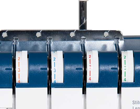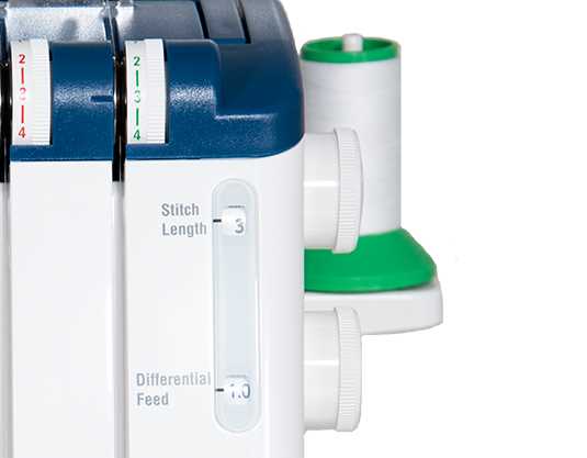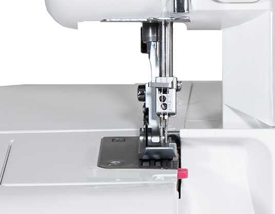 Le FA4 avec commande électronique du pied est une surjeteuse avancé grâce à 2 aiguilles et 2, 3 ou 4 fils . Le rapport d'alimentation différentiel, qui est réglable de 0,5 à 2,25 permet un contrôle exceptionnel pour traiter tous les types de tissus et pour créer des effets spéciaux désirés. Enfilage de la machine est un jeu d'enfant avec des guides de fil à code couleur et un boucleur inférieur avec guide pour enfilage facile. Il suffit de mettre le fil dans le guide, appuyer sur un bouton et le boucleur inférieur est filé. Le guide revient automatiquement à sa position normale lorsque vous tournez le volant. La tension du fil s’enlève automatiquement lorsque l'utilisateur décroche le pied presseur de sorte que vous pouvez tirer à travers les fils en douceur. Le FA4 vous permet également de passer rapidement à ourlets roulotté sans changer la plaque d'aiguille. Un point de pré-tension boucleur inférieur élimine le besoin de changement de tension pour les ourlets roulotté.