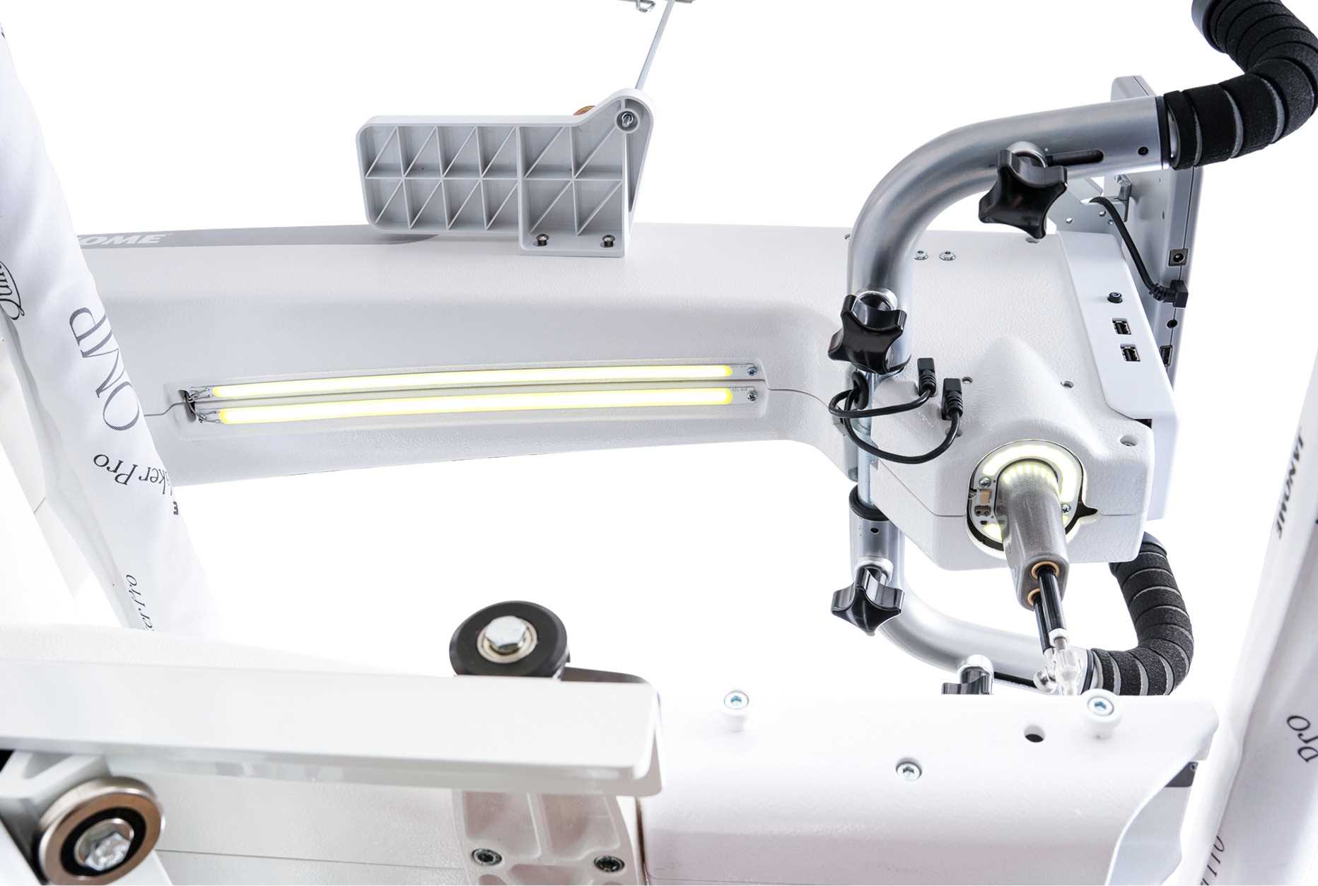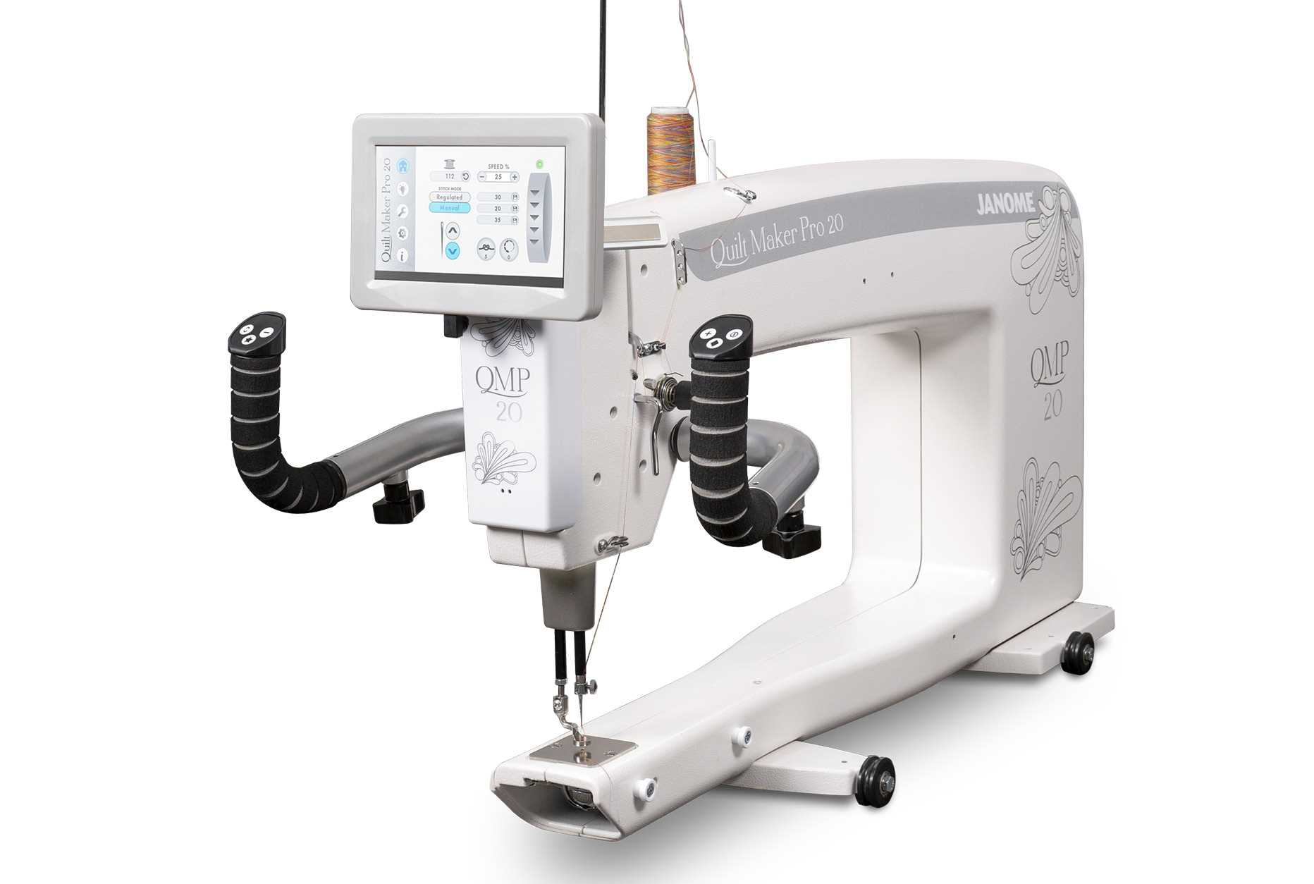 La Quilt Maker Pro optimise vos compétences en quilting. Janome, leader des produits innovants qui ont révolutionné l'industrie de la couture, propose une machine à coudre et à quilter à bras long, avec un réglage précis et un contrôle de point précis. La Quilt Maker Pro 20 offre une hauteur réglable, des boutons de guidon personnalisables et des vitesses allant jusqu'à 2 500 tours. Elle est équipée d'un cadre de 3,6 m et d'un dévidoir.