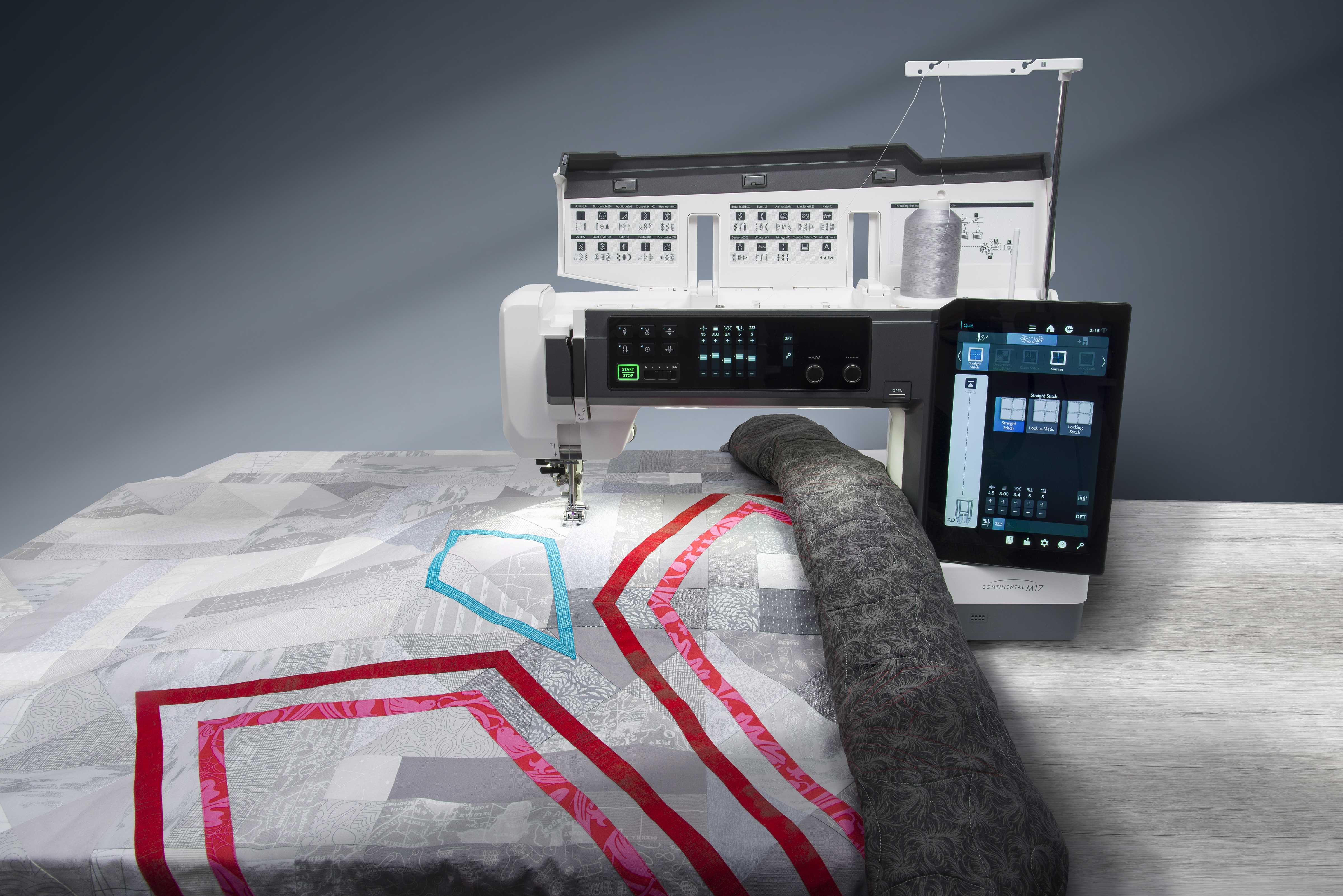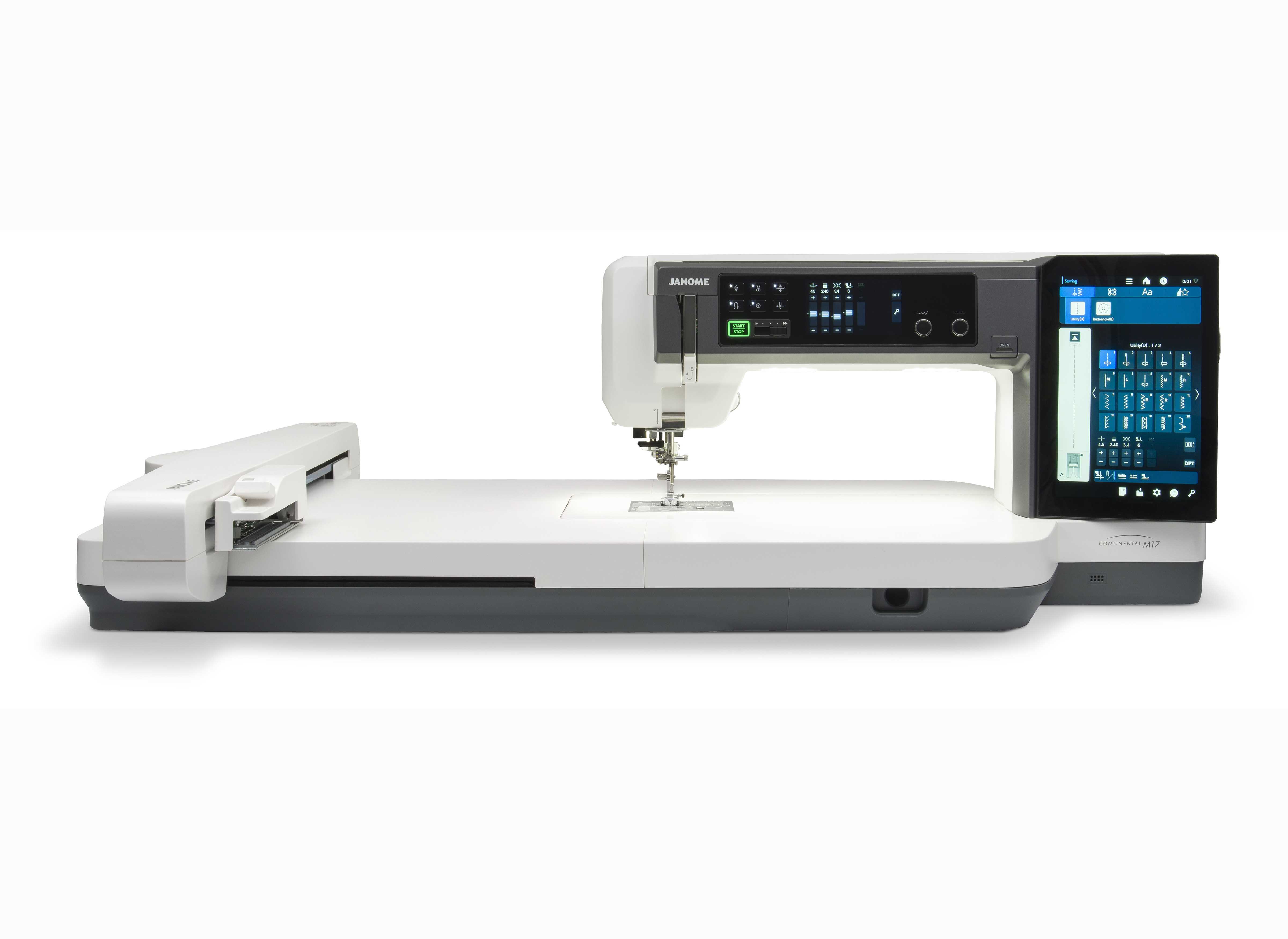 Over 1,200 built-in embroidery designs and the largest embroidery hoop in the industry at 30" opens up a whole new world of design capabilities. Five included embroidery hoops to use with the built-in programs from monogramming, to sashiko and everything in between. Janome original features such as AcuFeed, QuiltBlockAdvisor, and Artistic Digitizer are included. Let the Continental M17 take you to the highest level of your own creative abilities.
