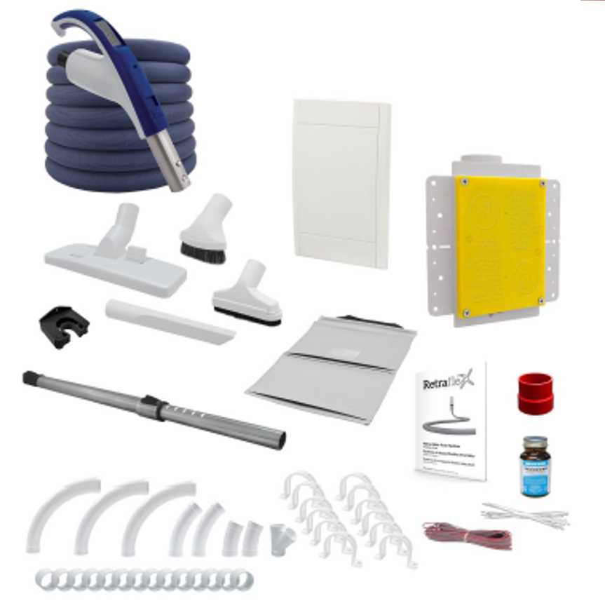 Ensemble complet de boyau rétractable Rétraflex. Incluant un boyau de 40 pieds régulier recouvert d'une housse ultra lisse protégeant vos meubles.