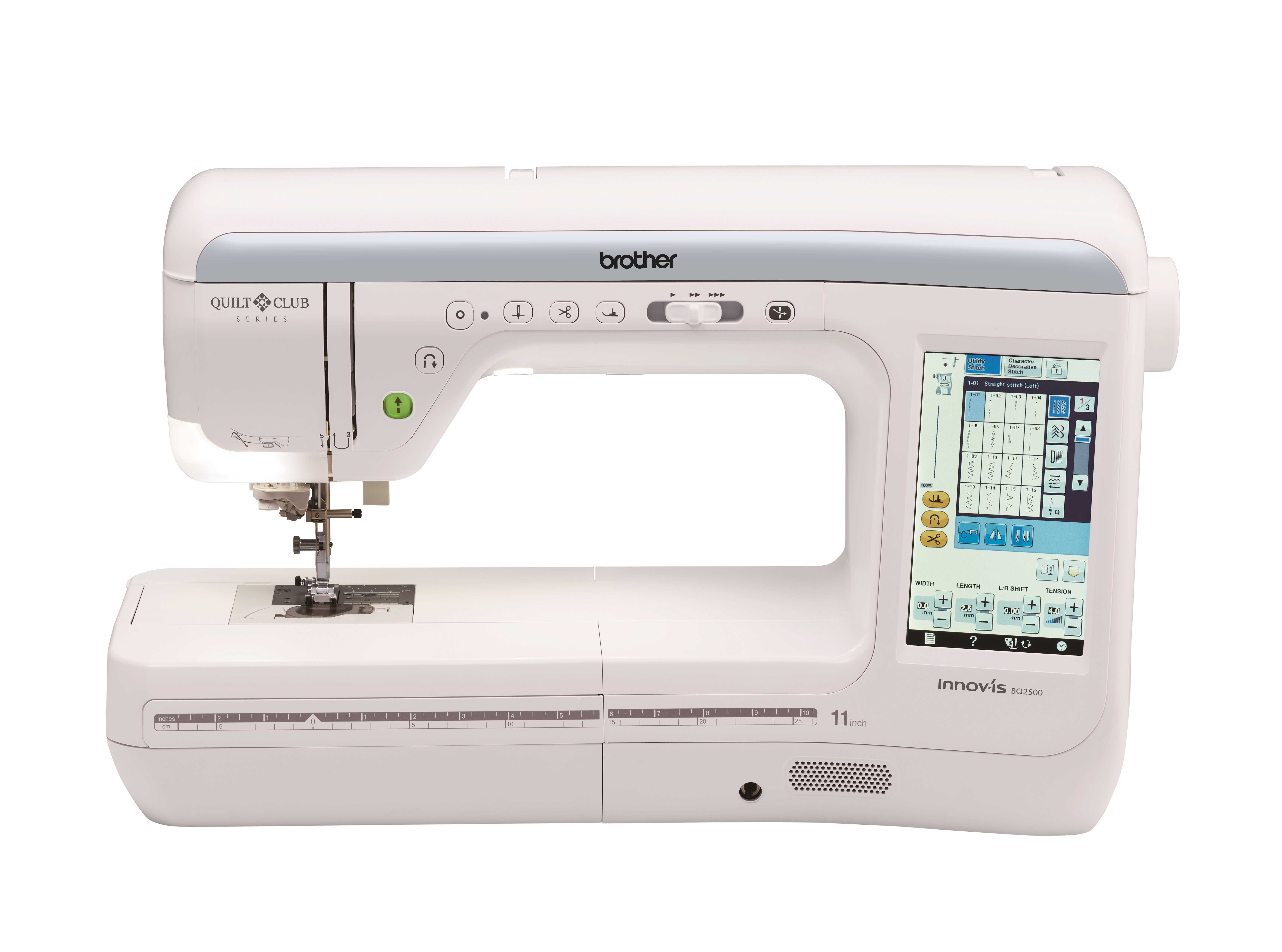 Faites passer la confection de courtepointe à un autre niveau avec la machine à coudre et à courtepointe Innov-ìs BQ2500 de Brother. Comprenant un pied à double entraînement numérique compact MuVit facile à utiliser, elle offre une bonne visibilité et un bon fonctionnement sur les tissus épais et une grande polyvalence en permettant de coudre des points en avançant et en reculant. Son grand écran tactile couleur ACL de 7 po permet de contrôler la machine à partir d icônes intuitives et de visionner des vidéos d instructions. De plus, l éclairage DÉL optimisé du grand espace de travail de 11,25 po éclaire le tissu dans un rayon de 10 po autour de l aiguille.