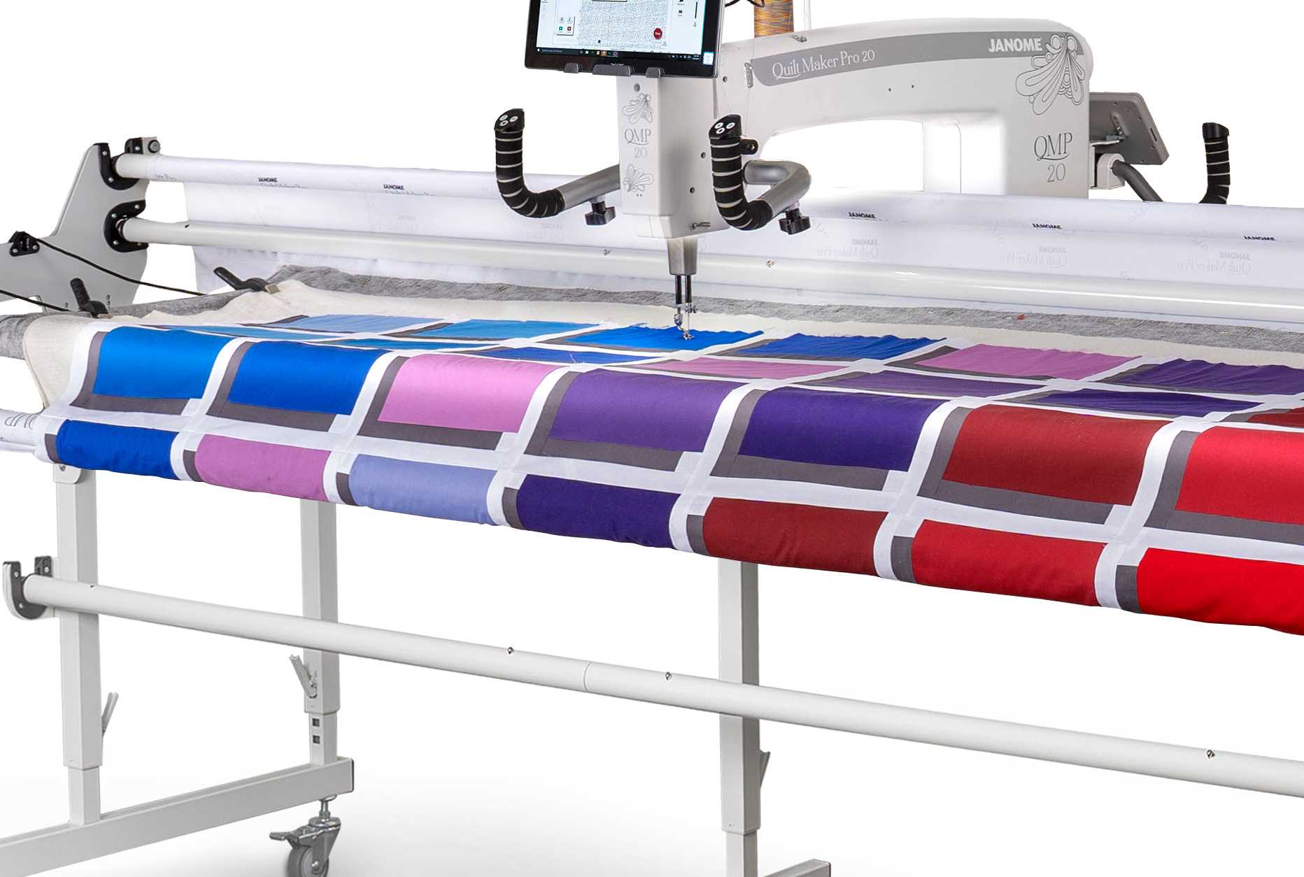 La Quilt Maker Pro optimise vos compétences en quilting. Janome, leader des produits innovants qui ont révolutionné l'industrie de la couture, propose une machine à coudre et à quilter à bras long, avec un réglage précis et un contrôle de point précis. La Quilt Maker Pro 20 offre une hauteur réglable, des boutons de guidon personnalisables et des vitesses allant jusqu'à 2 500 tours. Elle est équipée d'un cadre de 3,6 m et d'un dévidoir.