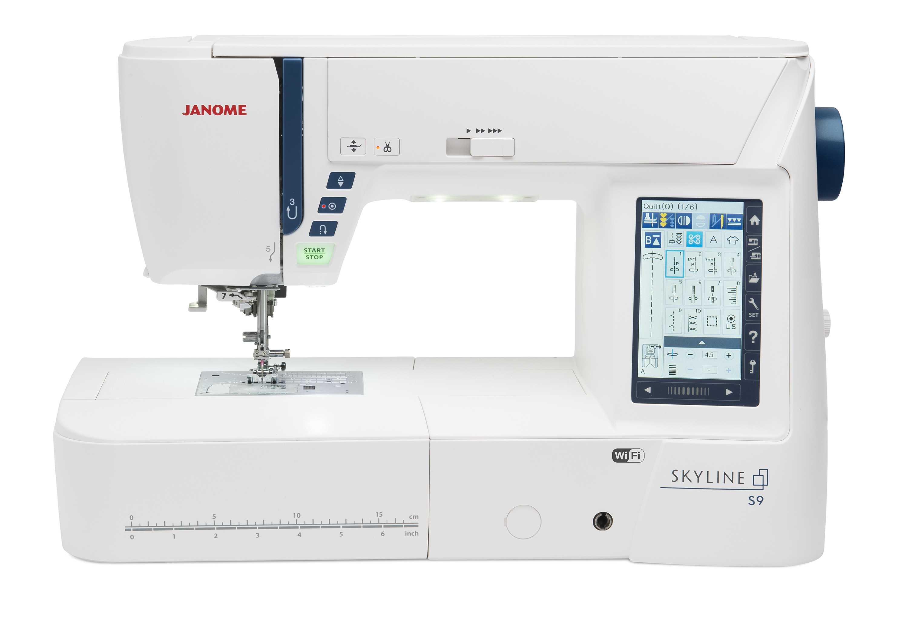 La Skyline S9 est la première machine de sa série à inclure à la fois la couture et la broderie. Cette superbe machine comprend une fonction Wi-Fi qui facilite l’envoi de motifs de broderie depuis un iPad ou un ordinateur directement à la machine.