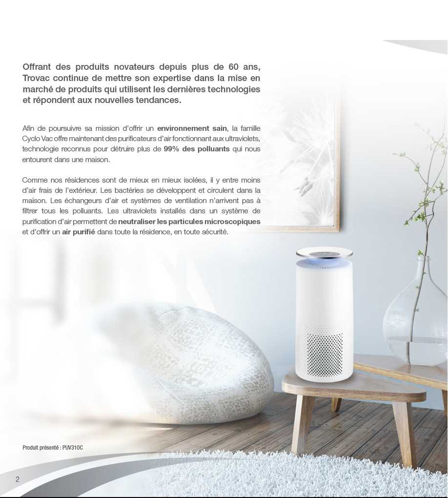 Le purificateur d'air Cyclo UV 310C est léger, facile à déplacer et peut être positionné sur le sol ou sur un meuble. La poussière, les poils d'animaux, les odeurs, le pollen, les gaz nuisibles ainsi que divers virus et bactéries sont filtrés de l'air à l'aide d'un système de filtre à trois couches et de la lumière UVC. Ce processus offre une purification de la pièce à 360 degrés.