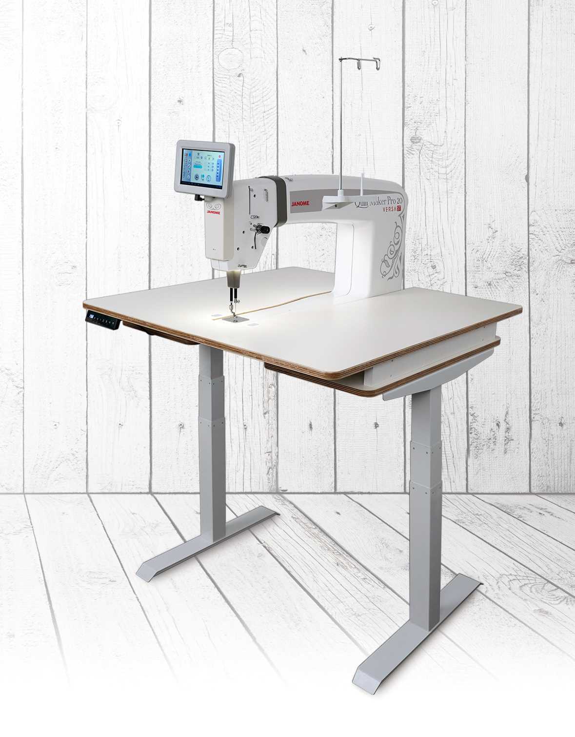 Cousez confortablement, quelle que soit votre façon de quilter ! La Quilt Maker Pro 20 Versa ST est équipée d'une machine à quilter à gorge de 50,8 cm (20 po) pouvant être montée sur une table élévatrice électronique ou une table réglable manuellement, toutes deux réglables à différentes hauteurs. Que vous préfériez quilter assis ou debout, vous trouverez toujours la position idéale pour votre quilting.